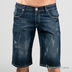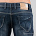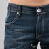 Модель застегивается на пуговицу и молнию, у поясу пришиты петли для ремня. Три передних кармана, два задних кармана. Декоративные элементы: потертости, вышивка.