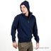 Мужской кардиган с капюшоном из мягкого вязанного трикотажа насыщенного темно-синего цвета. Застежка на молнию. Манжеты и низ выполнены из трикотажной резинки.