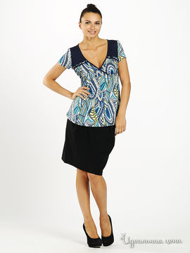 Блузка My collection женская, цвет синий / белый / зеленый