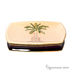 пальму в оттенках зеленого и коричневого цветов на фоне цвета льна, имеющие золотую окантовку и бордюр цвета бургундии. Коллекция дополнена шторкой, ковриком и полотенцами с вышивкой.