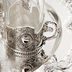 Круглый поднос, 6 стаканов в ажурных металлических подстаканниках с серебряно-никелевым покрытием.