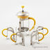 Набор состоит из 5 предметов (заварник 600мл. и 4 чашки 200мл) Силиконовое покрытие ручек, предотвращающее их нагревание, обеспечивает безопасное и очень комфортное использование посуды. Можно мыть в посудомоечной машине. Европейский дизайн подчеркнет элегантность интерьера и Вашу индивидуальность.