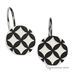 Яркие и необычные по форме предметы изготовлены из керамики и украшены изящным орнаментом в виде решетки. Низ предметов акцентирован широкой голубой полосой. Орнамент повторяется на шторке, коврике и жаккардовых полотенцах.