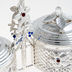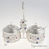 Десертный набор для вареня и меда на подставке. Стеклянные емкости по 250 мл . Подставка из металла с серебряно - никелевым покрытием, украшена цветочным узором и инкрустирована эмалью.