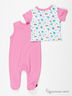 Потрясающий детский комплект выполнен из мягкого хлопкового трикотажа. Футболка с круглым вырезом горловины. Застежка на кнопки на плече. Короткие рукава. Ползунки с замечательным рисунком на полочке. Застежка на кнопки на лямках и в шаговом шве. Формованный след.