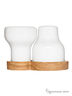 Набор для специй сделан из белой керамики. Продается с деревянной подставкой из дуба. Комплект идеален для подачи соли и перца. Размер: 10x21,2x10 см.