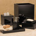 Коллекция изготовлена из эбенового дерева в глубоком темно-коричневом цвете с малейшим намеком на зернистость. Каждый предмет многоступенчато покрыт блестящим лаком.