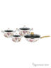 8пр.: 3 кастрюли : 2,3л(16см); 3л(18см); 5л(22см), ручки керам/нержав. сталь, стенки 1,5мм., сковорода вок 4л(30см), ручка бакелит с силиконовым покрытием, крышки стекл, антипригарное покрытие Teflon. Состав: углерод. сталь.