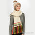 Край шарфа контрастен, в тон отвороту шапки. Украшен бахромой.