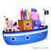 В наборе: лодка, которая держится на воде, фигурки Пеппы, Джоржа и дедушки, набор мелков для игры в ванной.