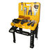 Мастерская с электродрелью, пилой, молотком, тисками, плоскогубцами, отверткой, гаечным ключом, брусками для распиливания. Мастерская удобно трансформируется в чемоданчик для переноски.