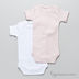 Модели с коротким рукавом. Классическая застежка-боди на кнопках. Одна модель простая розовая. Вторая - с множеством мелких принтов.
