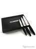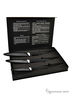 В подарочной упаковке размещен набор ножей из циркониевой керамики белого цвета. Рукоятки (А05) из бархатистого прорезиненного пластика черного цвета.