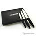 В состав набора входят: Нож Шеф с лезвием 150 мм, нож Универсальный с лезвием 125 мм и нож для фруктов и овощей с лезвием 100 мм. Материал, из которого состоят лезвия ножей: циркониевая керамика, цвет: белый. На лезвии каждого ножа нанесена лазерная гравировка, не стирающаяся со временем и позволяющая лезвиям надолго оставаться острыми, до 5 лет. При правильном их использовании, нарезки овощей, фруктов и других мягких тканей, они не затупятся со временем как обычные стальные лезвия. Рукоятка (тип А05) из бархатистого прорезиненного пластика приятно и удобно лежит в руке. Лезвие каждого ножа защищено пластиковым чехлом, что позволяет класть нож вместе с другой домашней утварью, такой как: столовые приборы, без опасения пораниться или повредить само лезвие. Подарочная коробка на магнитных замках. Описание и инструкция к ножам на русском языке.