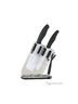 Набор керамических предметов на подставке Pomi d"Oro SET12 Arco Bianco. Ножи и пилер изготовлены из белой керамики Kerano™, длина лезвий - 10, 12, 15, 18 см, толщина 2 мм. Чёрная обрезиненная ручка. Kerano™ - уникальный керамический нано-материал производства Керано Прудиционе СПА, Виа Дей Милле 40, 80121 Неаполь, Италия, который не содержит вредные примеси, вт.ч. перфоктановую кислоту (PTFE) и примеси, используемые для легированной стали. Химически нейтрален, не вступает в химическую реакцию с пищей во время готовки.