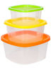 Продукты в контейнере можно хранить в холодильнике и разогревать в микроволновой печи. Размеры: 12*12*6 см; 0,5 л; 0,037 кг. 14,5*14,5*7 см; 0,9 л; 0,052 кг. 18*18*8 см; 1,55 л; 0,073 кг. Внимание! Производитель оставляет за собой право менять конфигурацию товара в зависимости от поставки.