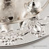 6 рюмок, кувшин. Все предметы украшены орнаментом под старину и покрыты серебряно-никелевым сплавом.
