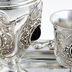 Коньячный набор , 8 предметов. Состав: 6 рюмок, кувшин. Все предметы украшены арнаментом под старину и покрыты серебряно- никелевым сплавом.
