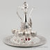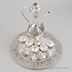 Коньячный набор из восьми предметов. Состав: 6 рюмок, поднос и кувшин с крышкой. Сувенирная продукция покрыта сплавном из серебра и никеля,