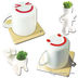 В набор входят 2 кружки, выполненные из керамики белого цвета, с изображением забавных смайликов и двух керамических фигурок-человечков. Фигурки наполнены семенами газонных трав. К кружкам прилагаются деревянные крышки ложки.