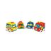 В наборе четыре мягкие машинки (школьный автобус, полицейская машина, пожарная машина, такси).