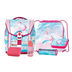 В наборе два пенала, сумка для обуви и спорта, бутылочка для напитков, бокс для завтрака. Рюкзаки имеют на лицевой стороне светоотражающие полосы. Водоотталкивающий материал верха. Имеют подставочки снизу в днище. Облегчённые школьные рюкзаки созданы на основе последних достижений науки и техники, учитывают новейшие исследования детской ортопедии. Ортопедический вкладыш в спинке. Снижает нагрузку на позвоночник на 30 % по сравнению с обычными ранцами. Обеспечивающие безопасную эксплуатацию ремни. Специальный каркас, поддерживающий форму. Все модели рюкзаков прошли медицинское тестирование, изготовлены из новейших экологически чистых материалов, способствуют правильному формированию осанки, софт-степ-система (пружинный элемент, выравнивающий моменты силы тяжести при неравномерном её распределении) разгружают позвоночник, смягчают толчки при ходьбе. Гарантия 3 года
