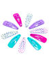 Набор мини заколок "ТОЧКИ" — это 10 симпатичных миниатюрных заколок, выполненных в яркой контрастной цветовой гамме. Аксессуары заботливо упакованы на очаровательную картонную подложку в виде розового медвежонка, так что вашей маленькой принцессе будет не только интересно и весело придумывать вместе с вами новые прически, но легко приучить себя к порядку.