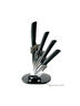 Ножи керамические Pomi d"Oro в наборе на подставке, изготовленs из черной керамики Kerano™, длина лезвий - 8 см, 10 см, 12 см, 15 см, толщина 2 мм. Чёрная обрезиненная ручка. Kerano™ - уникальный керамический нано-материал производства Керано Прудиционе СПА, Виа Дей Милле 40, 80121 Неаполь, Италия, который не содержит вредные примеси, вт.ч. перфоктановую кислоту (PTFE) и примеси, используемые для легированной стали. Химически нейтрален, не вступает в химическую реакцию с пищей во время готовки.