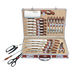 Состав: 1 - Топорик - 1 - Нож «Шеф-повара» - 1 - Нож для резки ломтиками - 1 - Нож для хлеба - 1 - Нож Универсальный - 1 - Нож разделочный - 1 - Нож для сыра - 1 - Нож для пиццы - 1 - Поварская вилка - 1 - Нож для чистки овощей - 1 - Ножницы для разделки птицы - 1 - Ножницы универсальные - 1 - Заточка для ножей - 6 - Столовых ножей - 6 - Столовых вилок - 1 - Дипломат.