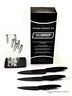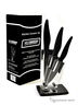 Набор ножей из циркониевой керамики чёрного цвета на стильной подставке. Рукоятки из бархатистого прорезиненного пластика черного цвета.