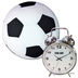 Набор из огромнейшего по размерам ретро-будильника и яркой игрушки-антистресс, выполненной в виде большого футбольного мяча.