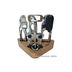 Деревянный стенд. Хромированная отделка поверхности. Состав: 1 штопор, 1 орехокол, 1 пресс для чеснока, 1 консервный нож, 1 деревянная подставка.