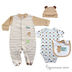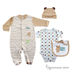 В подарочный набор из коллекции "Медвежонок" входят: комбинезон, шапочка, боди и нагрудник. Все выдержанно в одной цветовой гамме с добавлением принта.
