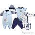 В подарочный набор "Строитель" входят: комбинезон, шапочка, боди, распашонка, штанишки и нагрудник. Все выдержанно в одной цветовой гамме с добавлением принта.