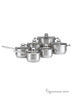 Посуда из нержавеющей стали не впитывает запахи и надолго сохранит тепло ароматного блюда. Содержат добавки хрома и никеля. Хром придает металлу глянцевый блеск, не тускнеющий с годами. Никель же отвечает за прочность и устойчивость этой посуды к образованию коррозии. Также этот металл защищает посуду от воздействия бытовых химических веществ, со временем способных нанести видимые повреждения. Состав набора: кастрюля: 2 л,2,9 л,3,9 л,6,5 л; ковш: 2,9 л,2 л, стеклянные крышки, металлические ручки.