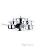 Посуда из нержавеющей стали не впитывает запахи и надолго сохранит тепло ароматного блюда. Содержат добавки хрома и никеля. Хром придает металлу глянцевый блеск, не тускнеющий с годами. Никель же отвечает за прочность и устойчивость этой посуды к образованию коррозии. Также этот металл защищает посуду от воздействия бытовых химических веществ, со временем способных нанести видимые повреждения. Состав набора: ковш 16x9см, 1.8л, кастрюля с крышкой 16х9см, 1.8л, кастрюля с крышкой 18х10.5см, 2.7л, кастрюля с крышкой 20х11см, 3.6л, кастрюля с крышкой 24х12см, 5.4л, сковорода с мраморным покрытием 24х7см, 3.1л, индукция.
