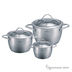 Стальные ручки. Стеклянная крышка. Состав: ковш с крышкой, кастрюля с крышкой. Дно подходит для индукции.