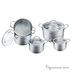 Стальные ручки. Стеклянная крышка. Кастрюля с крышкой: 16см h-10,5см - 2,1л; 18см h11,5см - 2,9л; 20см h-12,5см - 3,9л; 24см h-14,5см - 6,5л. Пароварка: 20см h-9.5см. Подходят для индукционных плит.