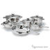 16 см кастрюля с крышкой (1,6 л), 18 см кастрюля с крышкой (2,3 л), 20 см кастрюля с крышкой (3,1 л), 24 см кастрюля с крышкой (5,2 л), 16 см сотейник с крышкой (1,6 л), 24 см сковорода с крышкой (2,9 л).