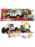 Ведь даже лучшие улицы Тойтауна иногда нужно ремонтировать. Именно здесь набор Dickie Toys приходит в нужное время. На своей погрузочной рампе внедорожник Ford Raptor с колесом свободного хода и прицепом транспортирует экскаватор Wacker Neuson EZ17 на строительную площадку, а игровая фигурка с оборудованием для обеспечения безопасности размахивает гидравлическим молотом и лопатой.