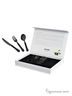 Великолепный набор столовых приборов изящной формы из 12 предметов, изготовленных из экологически чистой циркониевой чёрной керамики. Набор столовых приборов многофункционален, легко моется, не окисляется и сохраняет витамины, а также лаконично сочетается с любой посудой.