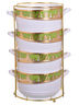 Набор из 4-х супниц LORAINE выполнен из высококачественного фарфора и украшен декоративным рисунком. Супницы компактно располагаются на оригинальной подставке из нержавеющей стали и не занимают много места при хранении. В фарфоровой посуде блюда сохраняют свои вкусовые качества, кроме того она обладает термической и химической прочностью. Благодаря оригинальному дизайну, такие супницы отлично подойдут как для ежедневного использования, так и для праздничной сервировки стола. Изделия оснащены двумя удобными ручками. В наборе: 4 супницы, 1 подставка. Подходит для мытья в посудомоечной машине.