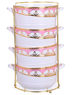 Набор из 4-х супниц LORAINE выполнен из высококачественного фарфора и украшен декоративным рисунком. Супницы компактно располагаются на оригинальной подставке из нержавеющей стали и не занимают много места при хранении. В фарфоровой посуде блюда сохраняют свои вкусовые качества, кроме того она обладает термической и химической прочностью. Благодаря оригинальному дизайну, такие супницы отлично подойдут как для ежедневного использования, так и для праздничной сервировки стола. Изделия оснащены двумя удобными ручками. В наборе: 4 супницы, 1 подставка. Подходит для мытья в посудомоечной машине.