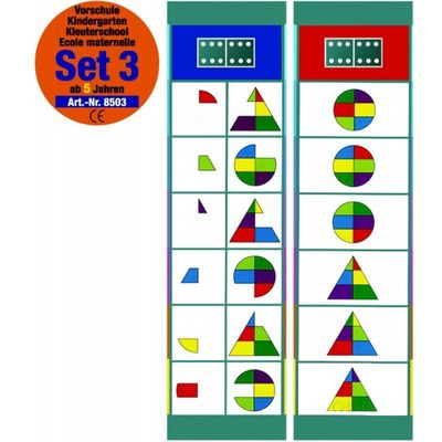 Набор из 12 карточек с заданиямиИспользуя магнитные фишки, дети знакомятся с геометрическими фигурами, зеркальным отражением предметов и животных, понятиям "больше-меньше", учатся распознавать направления "верх-низ" и "лево-право". Игра тренирует логическое и пространственное мышление.