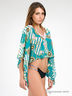 Яркая накидка свободного кроя из быстросохнущего материала с актуальным принтом на морскую тему. V-образный вырез горловины.