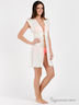 Оригинальная пляжная накидка из эластичного хлопкового материала. Проймы и низ изделия обработаны оверлоком, горловина и передняя часть окантованы трикотажной лентой. Пояс дополнен нашивкой, посажен на многорядную резинку. Спереди завязки.