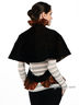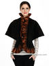Оригинальная накидка из натурального меха кролика. Шелковистая подкладка, края изделия декорированы шерстяными оборками. Спинка дополнена двумя крупными кнопками, регулирующими ширину изделия.