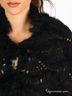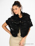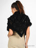 Накидка оригинальной ажурной вязки декорирована продетыми вставками из кроличьего меха.