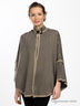 Детали: воротник-стойка, кожаная застежка под горлом, оригинальные цельнокройные рукава