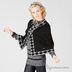 Оригинальная накидка с круглым вырезом горловины и застежкой на три верхние пуговицы. По горловине и краю накидки узор в виде ромбов.